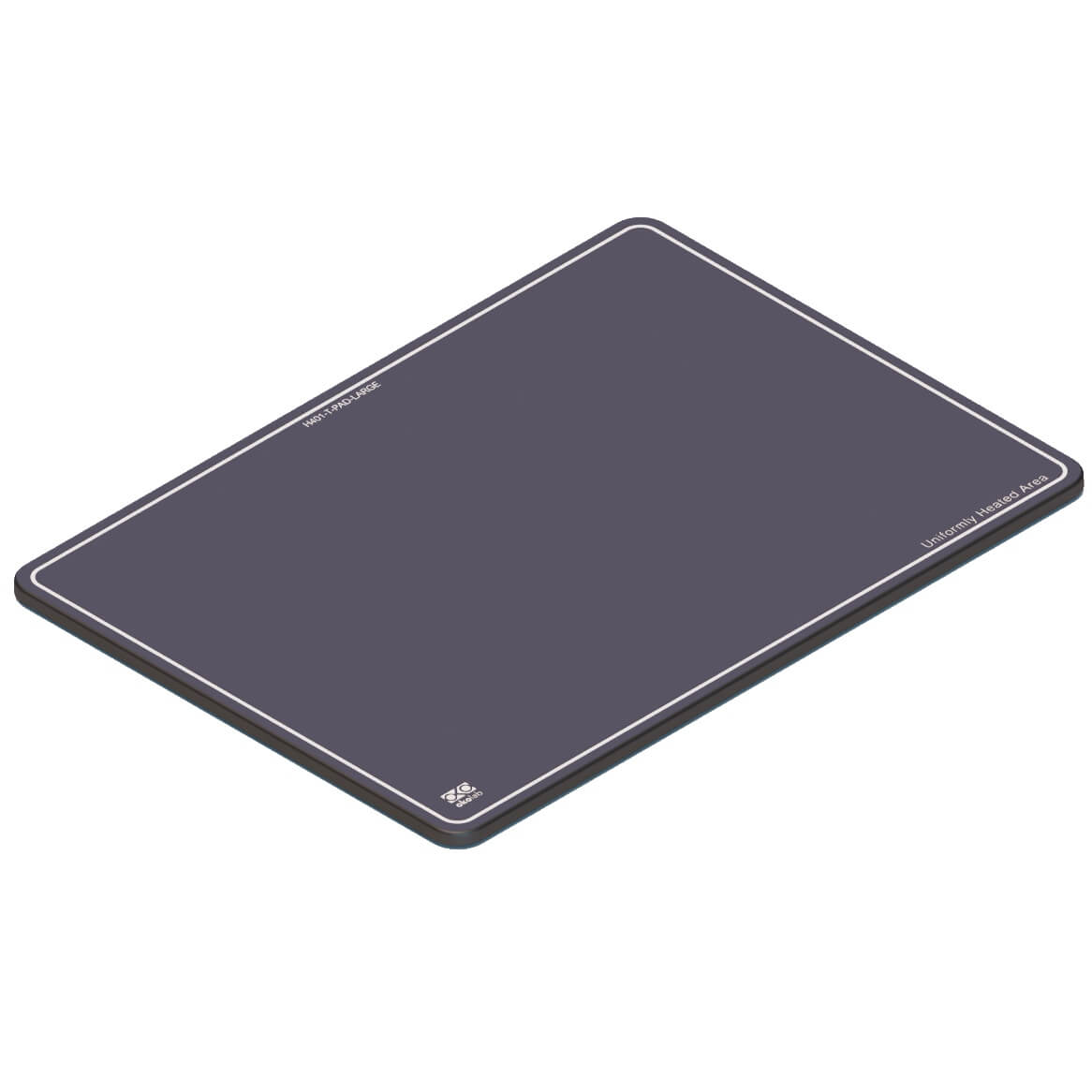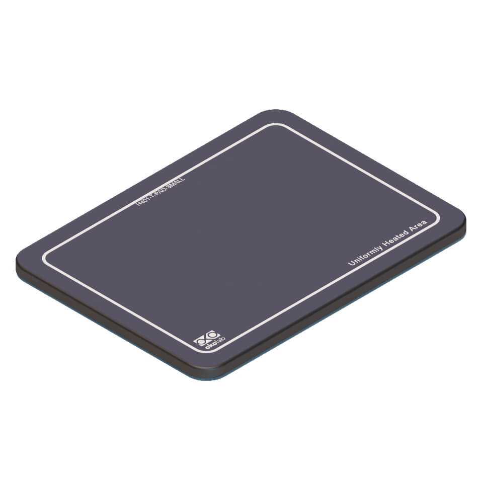 Okolab’s H401-T-PAD is a flat metal plate, which can be used on any surface (table top, cabinet work surface, etc.) to create a temperature-controlled flat surface for holding plastic dishes or anything that needs to be kept accessible and warm.